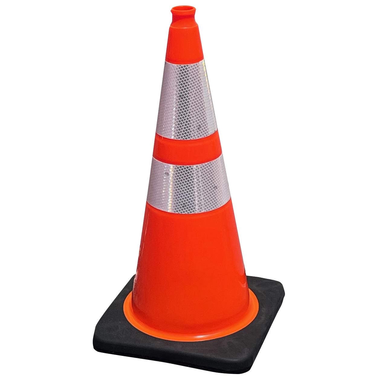 This durable 28” orange PVC traffic cone is built for high visibility and long-term performance in active work zones. Featuring Grade IV High-Intensity (HI) retroreflective collars, it meets the demands of both day and night visibility on the road.