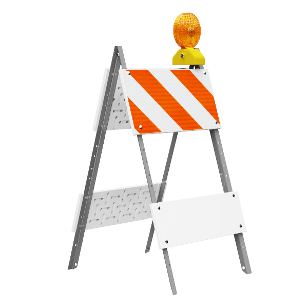 The Combocade® Barricade combines molded plastic boards with galvanized steel legs to deliver a durable and economical Type II barricade ideal for construction zones, road work, and pedestrian safety.